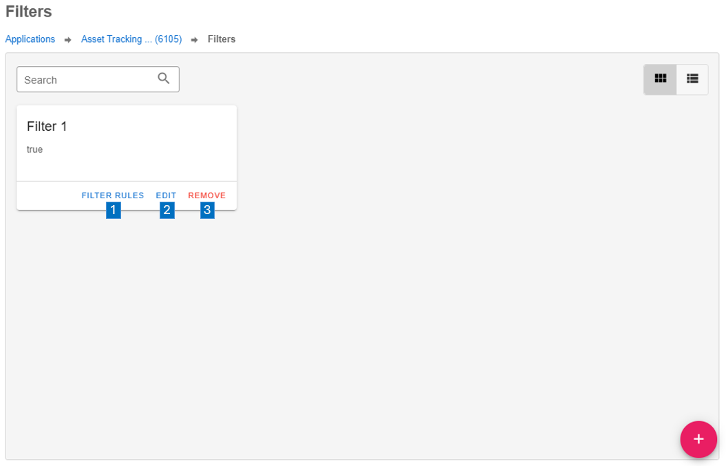 The Filters page allows you to create, manage, and organize saved filter combinations for quick access throughout the application. Saved filters help you quickly find specific groups of trackables based on property values.