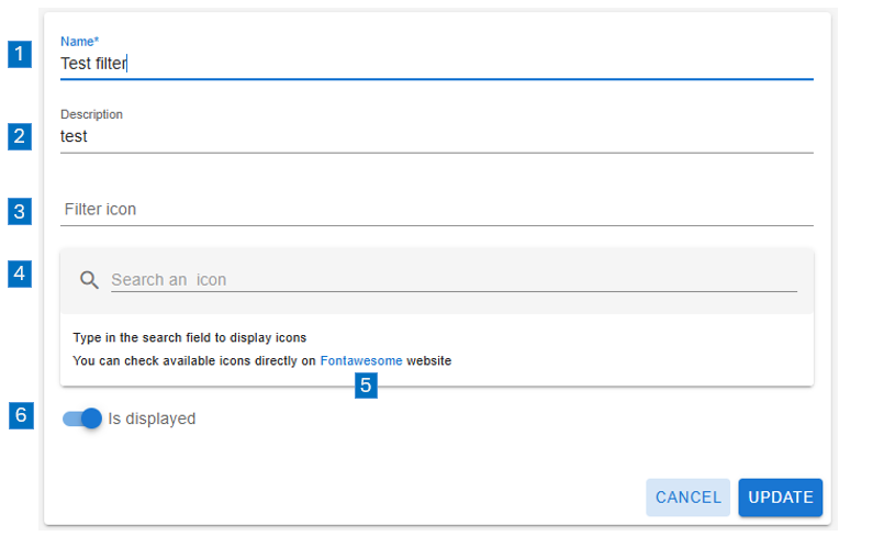 - Is Displayed: Toggle to show/hide filter in quick filter panels